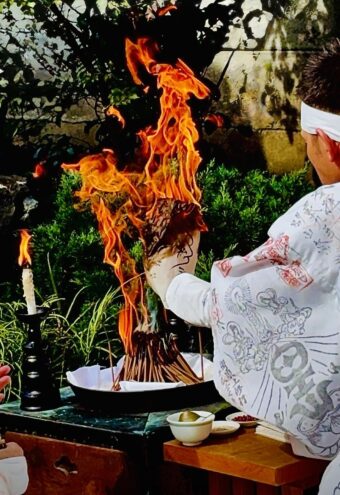 塩加持祈祷でご自身の御札を神火に当て大神様、お不動様の